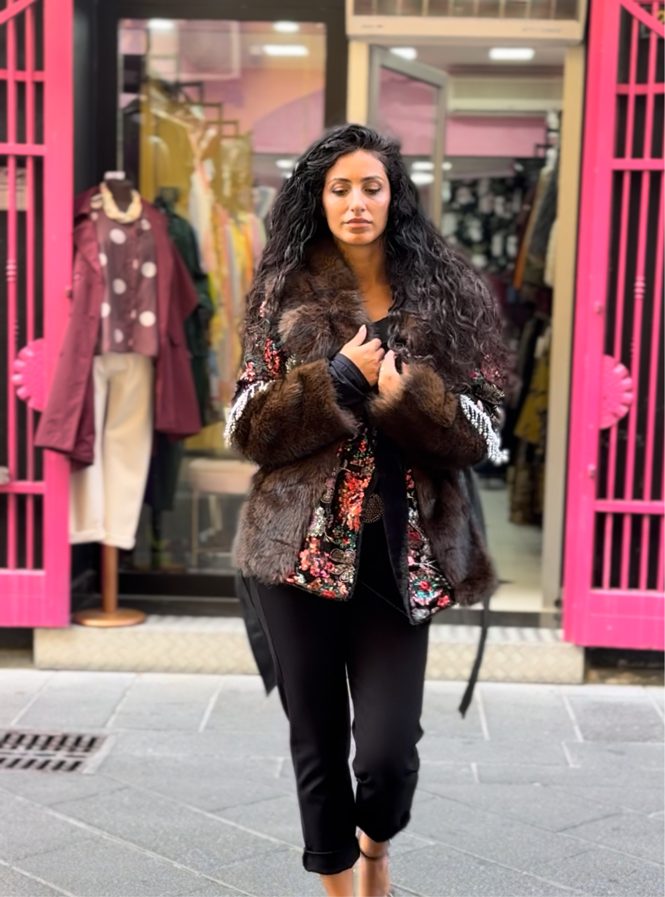 Eco pelliccia taglia unica circonferenza seno 120cm la modella è una taglia s
